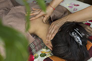 Это делается пальцами рук и маленькими деревянными палочками .Такой массаж стимулирует внутренние органы и способствует выделению токсинов.