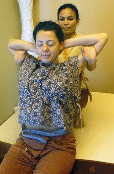 Thai массаж великолепно облегчает мускульную боль, которая образовалась от постоянного напряжения или монотонного действия, например, длительное сидение за компьютером или при подъёме тяжестей.